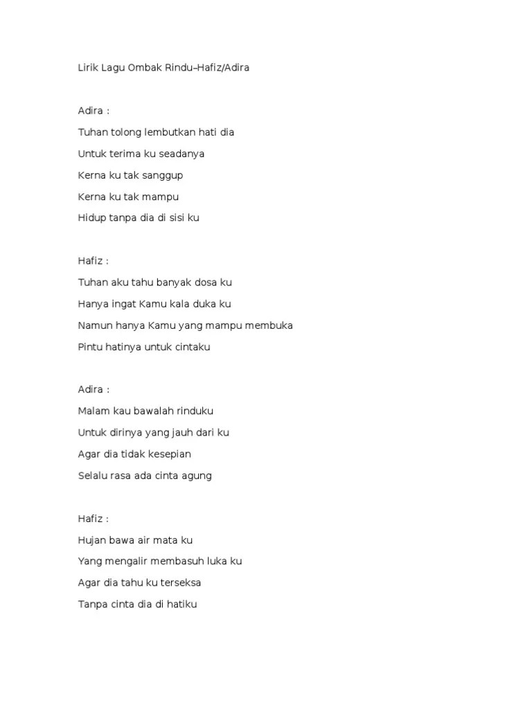 Lagu wanda omar ini dirilis di bawah naungan label musik bagus indonesia dan manajemen bumi entertainment. Senin, 22 mar 2021 15:23 wib. Berikut adalah lirik lagu 'sabda rindu' yang dinyanyikan . Dalam lirik lagu yang dinyanyikan mengatakan bahwa warga sekolah merindukan suasana belajar di sekolah. Artikel ini mengkaji makna kerinduan pada lirik lagu "hanya rindu" karya andmesh kamaleng melalui analisis semiotika roland barthes.